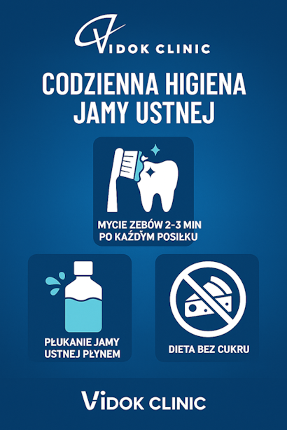 W Vidok Clinic w Kaliszu uczymy pacjentów prawidłowych technik szczotkowania, nitkowania, stosowania płukanek i dbania o dietę. Zadbana jama ustna oznacza mniejsze ryzyko próchnicy, zapaleń dziąseł i problemów, które mogą prowadzić do poważnych konsekwencji zdrowotnych.